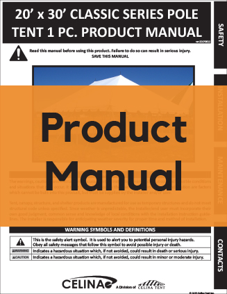 Celina's Classic Series Pole Tents are designed to be applicable to all types of events, due to the simple tensioning design. The tent top of a Classic Series Pole Tent is supported by center poles in the middle of the tent top, which are tensioned down to each of the corner and side poles. These poles are then anchored to stakes via ropes or ratchet assemblies, stabilizing the entire tent system or otherwise anchored for maximum stability.