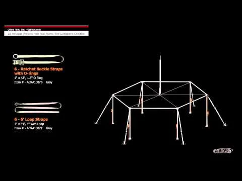 Pinnacle High Peak Cross Cable tents are designed with a high peak tube supported by cross cables extending from each corner tube, maximizing the usable space underneath while at the same time eliminating the need for interior frames or support poles. The simple design allows for easy transportation, storage, and installation involving only two people due to the reduced amount of hardware in comparison to other frame or pole tents.